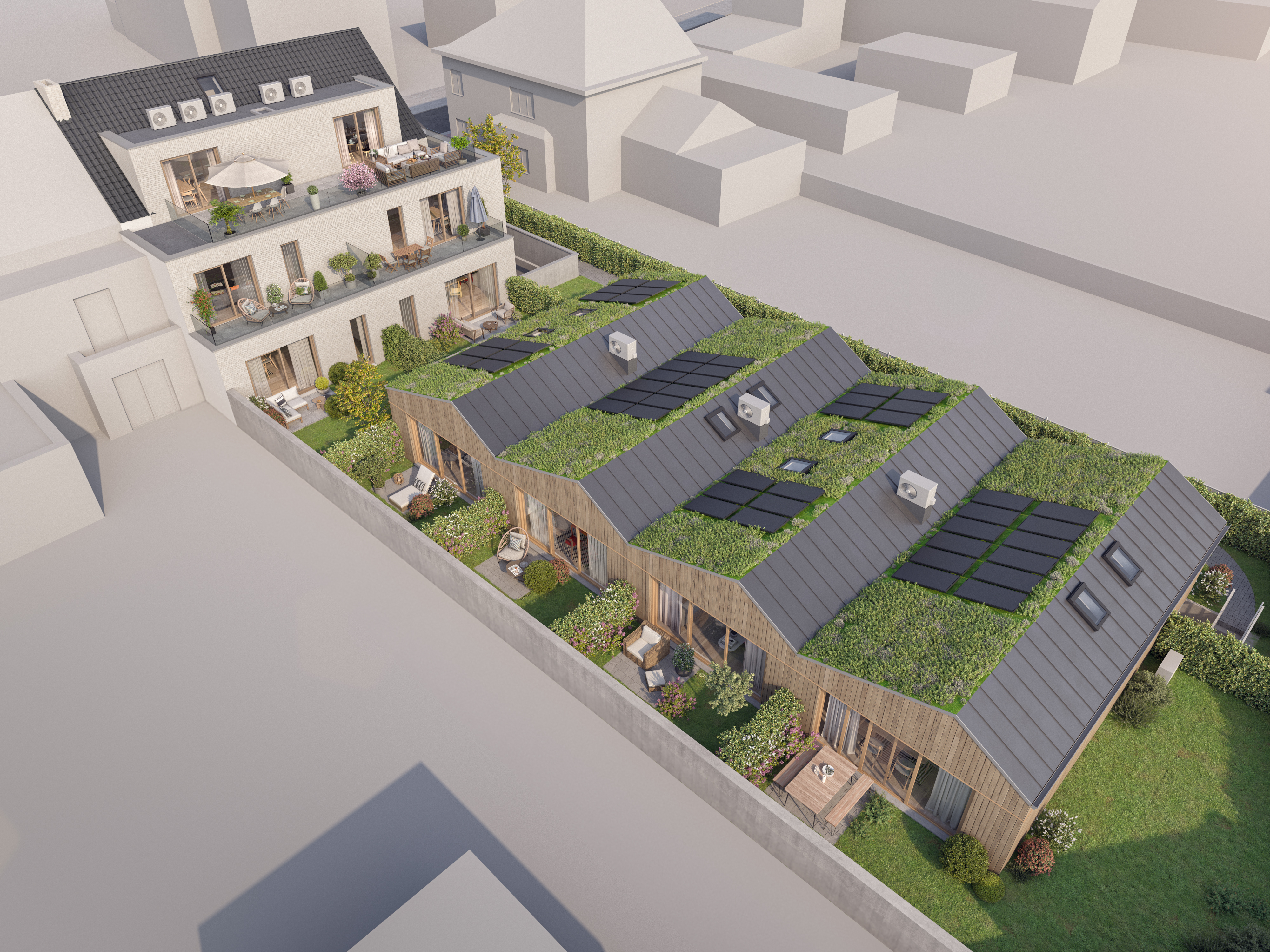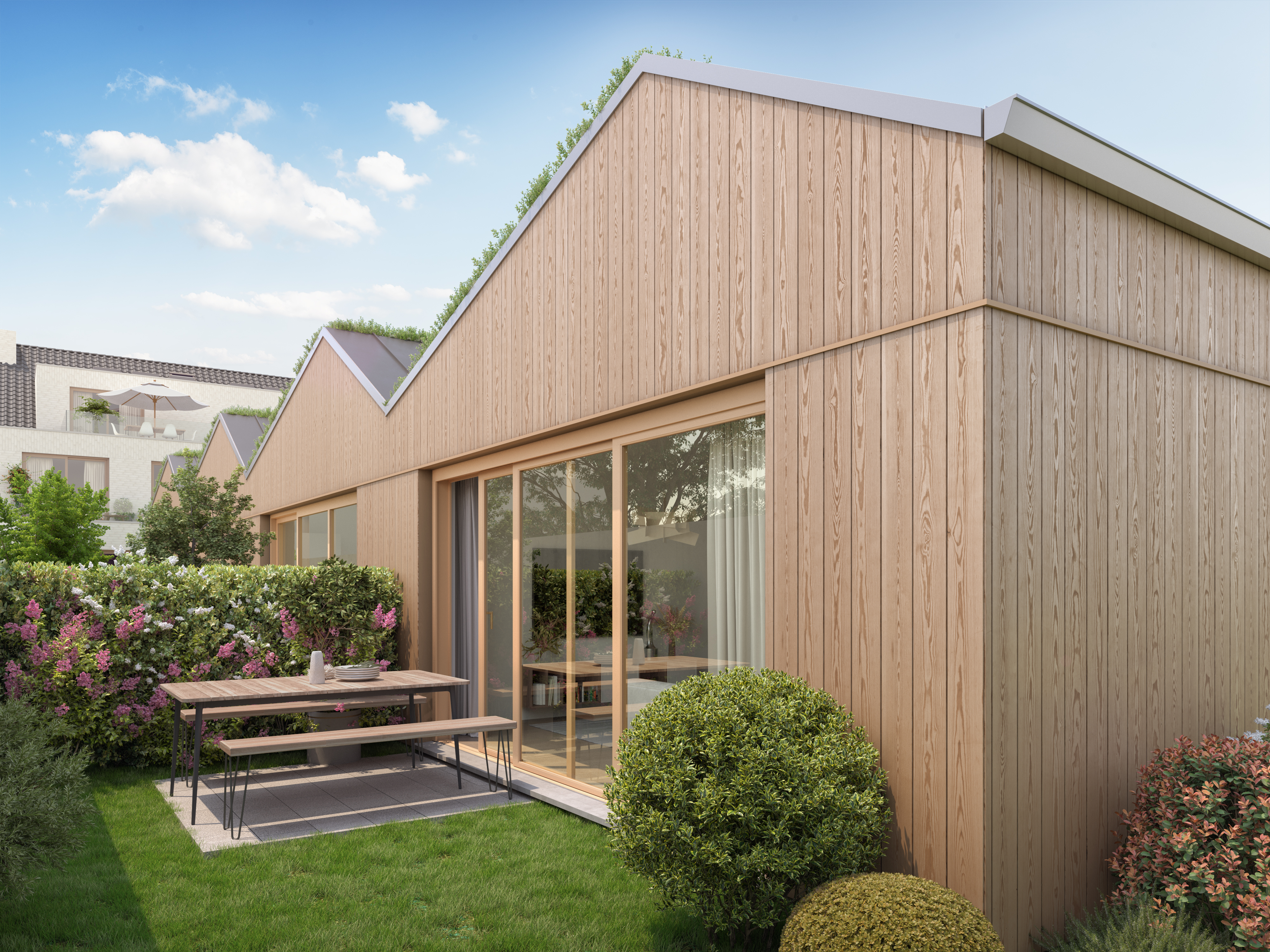 De gelijkvloerse appartementen en starterswoningen hebben een gezellige tuin.